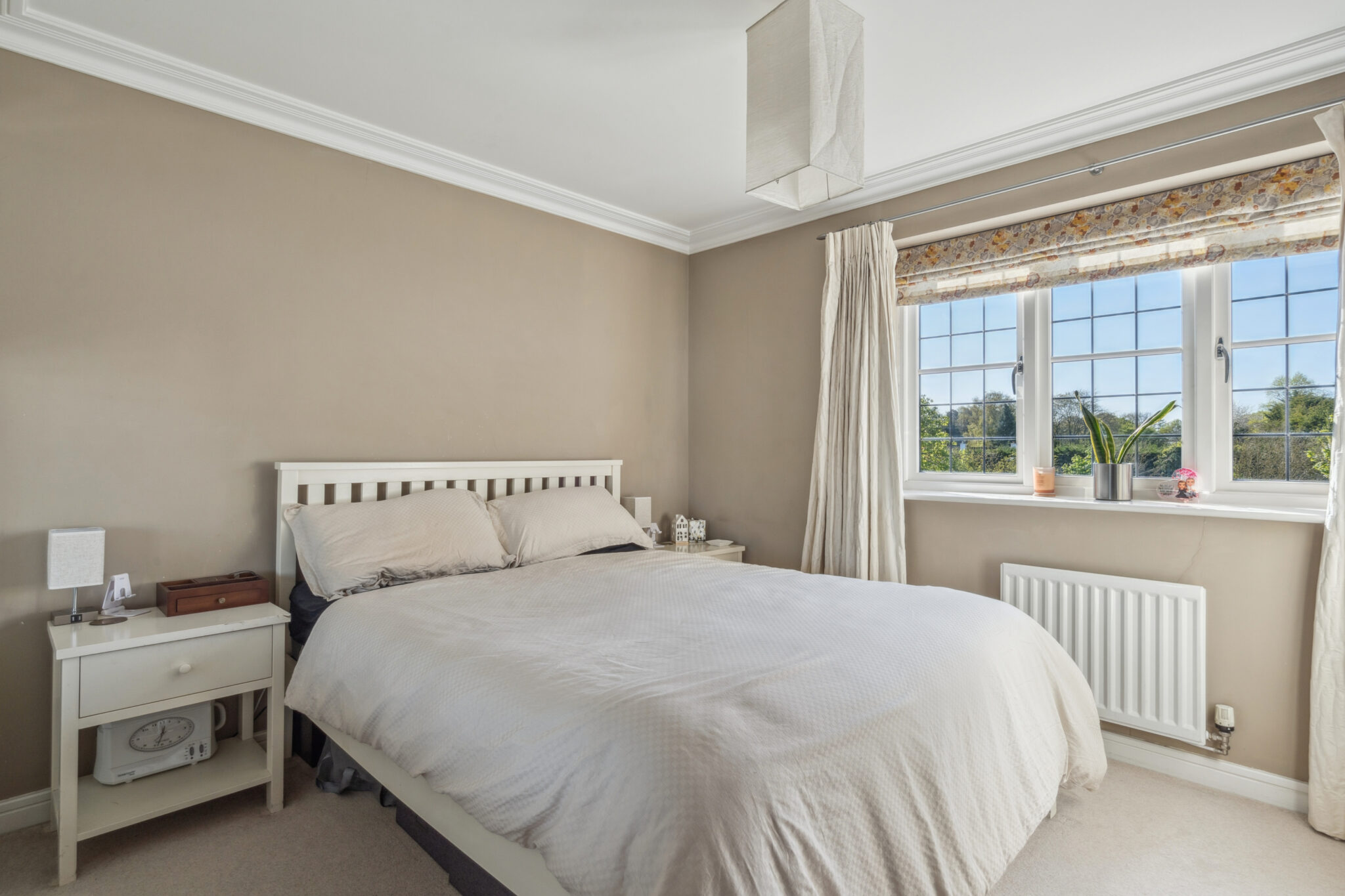 A well designed first floor one bedroom apartment in a prestigious gated development on the edges of Knotty Green. The apartment has an open plan living/dining room/kitchen with leafy views from the windows. It has a spacious double bedroom with fitted wardrobe and then a main bathroom with shower over the bath in addition there is a storage cupboard. Allocated underground parking for 1 car.
