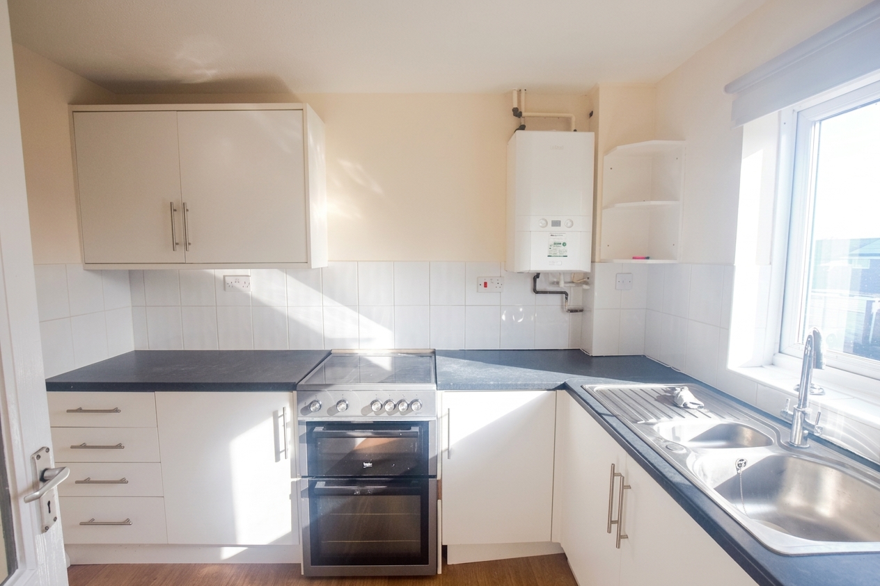 Unfurnished two bedroom ground floor apartment on Lea Park. Features living room, fitted kitchen, bathroom, and allocated parking. Available end of March. EPC C. Council Tax Band B.