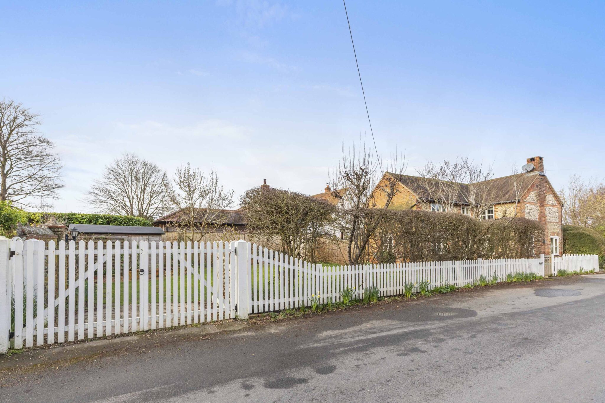 Externally, the landscaped, south facing garden is a particular feature of the property. Gated pedestrian and vehicular access offer off-street parking if desired. The garden includes an area of lawn with stepping stones, a circular paved patio, external lighting, cold water tap, newly planted borders and a recently installed rear fence and front garden gate. The property is well screened and enclosed by mature hawthorn hedging, fencing and traditional brick and flint walls. A timber shed with window and power connected provides useful additional storage or workspace. The property is served by LPG gas supply.