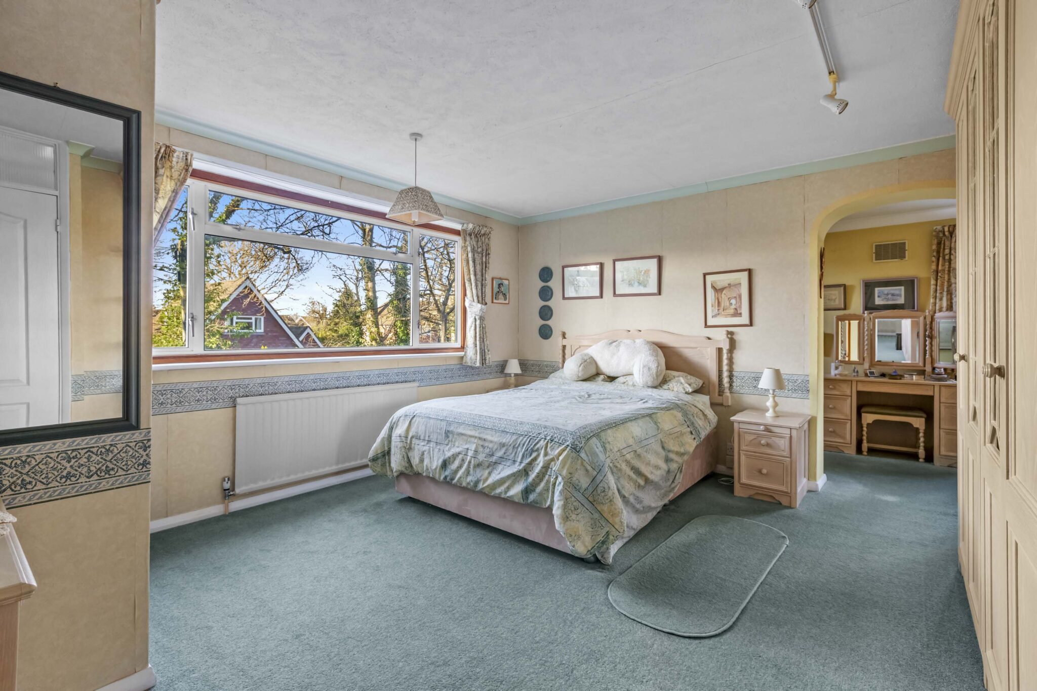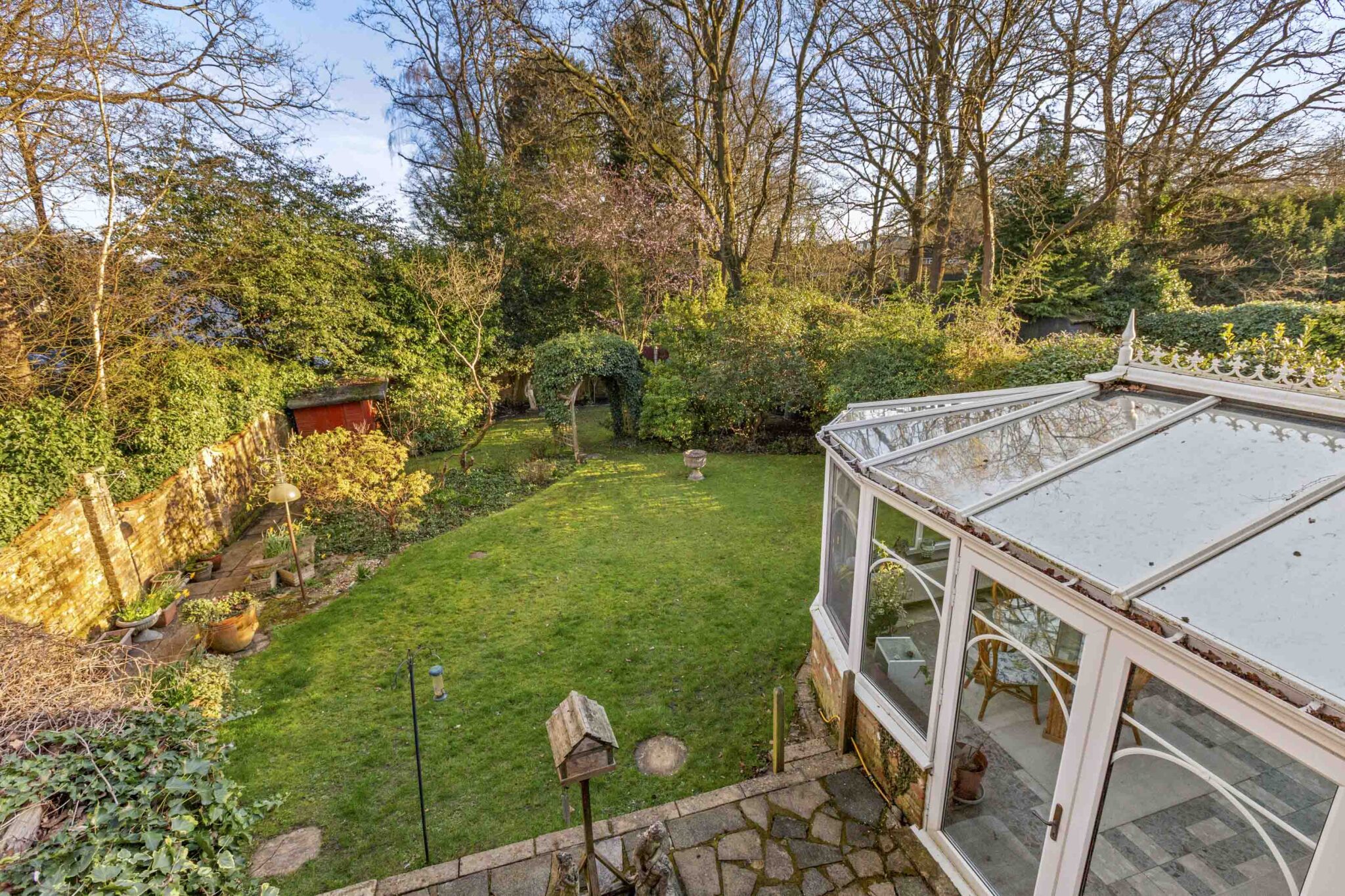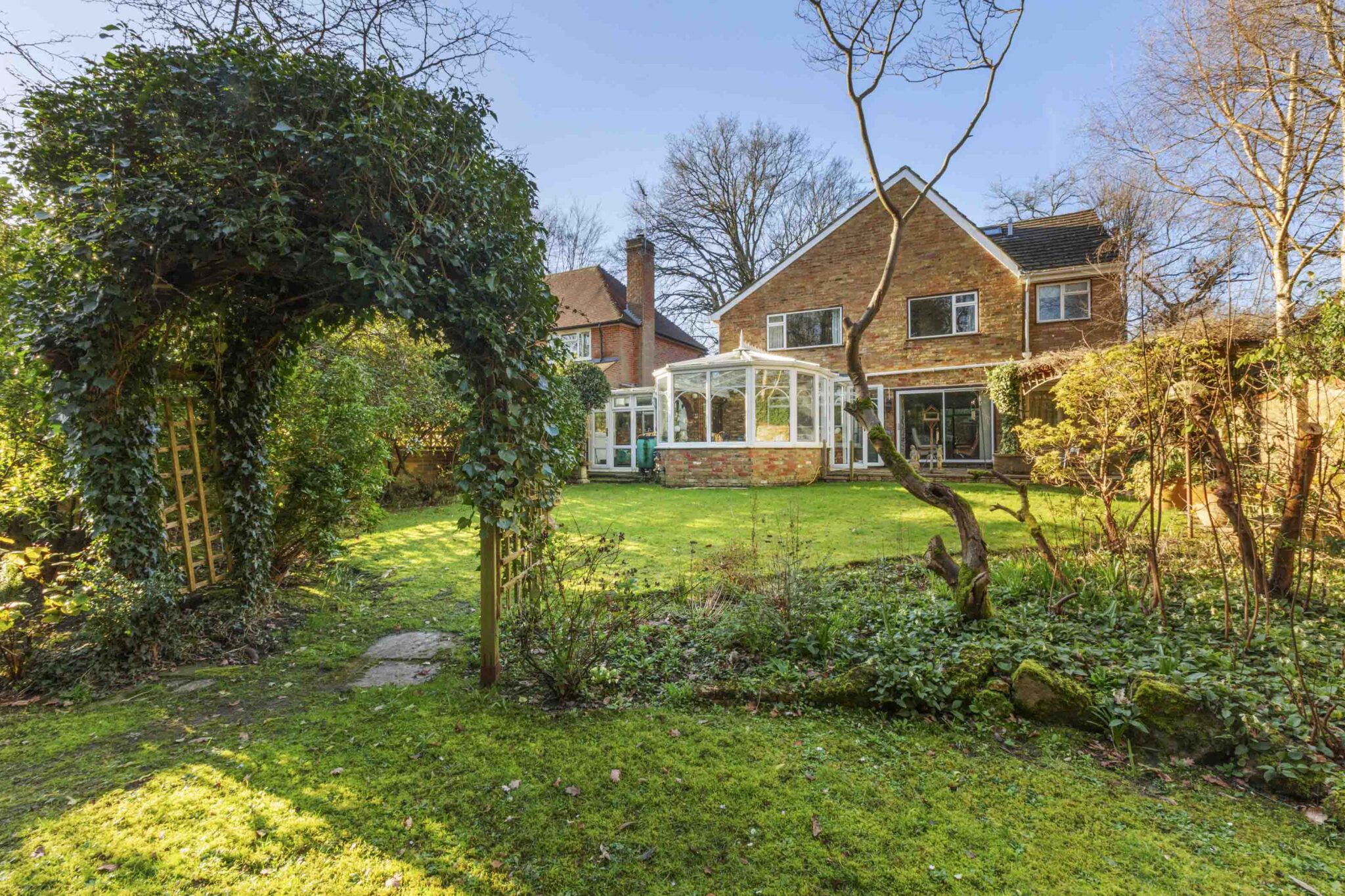 The principal bedroom suite boasts fitted wardrobes, a dressing room, and ensuite bathroom with a separate shower and a corner bath. Three further double bedrooms, each with fitted wardrobes, are served by a well-appointed family bathroom and large boarded loft space give further extension possibilities. Additional features include a secluded, level, mature rear garden with multiple patio areas and beautiful shrub borders, spacious in and out driveway providing ample off-road parking leading to the integral tandem garage with electric door. This impressive home offers a rare combination of generous proportions, flexible layout, and a sought-after location, making it an exceptional choice for families seeking convenience in a peaceful setting.