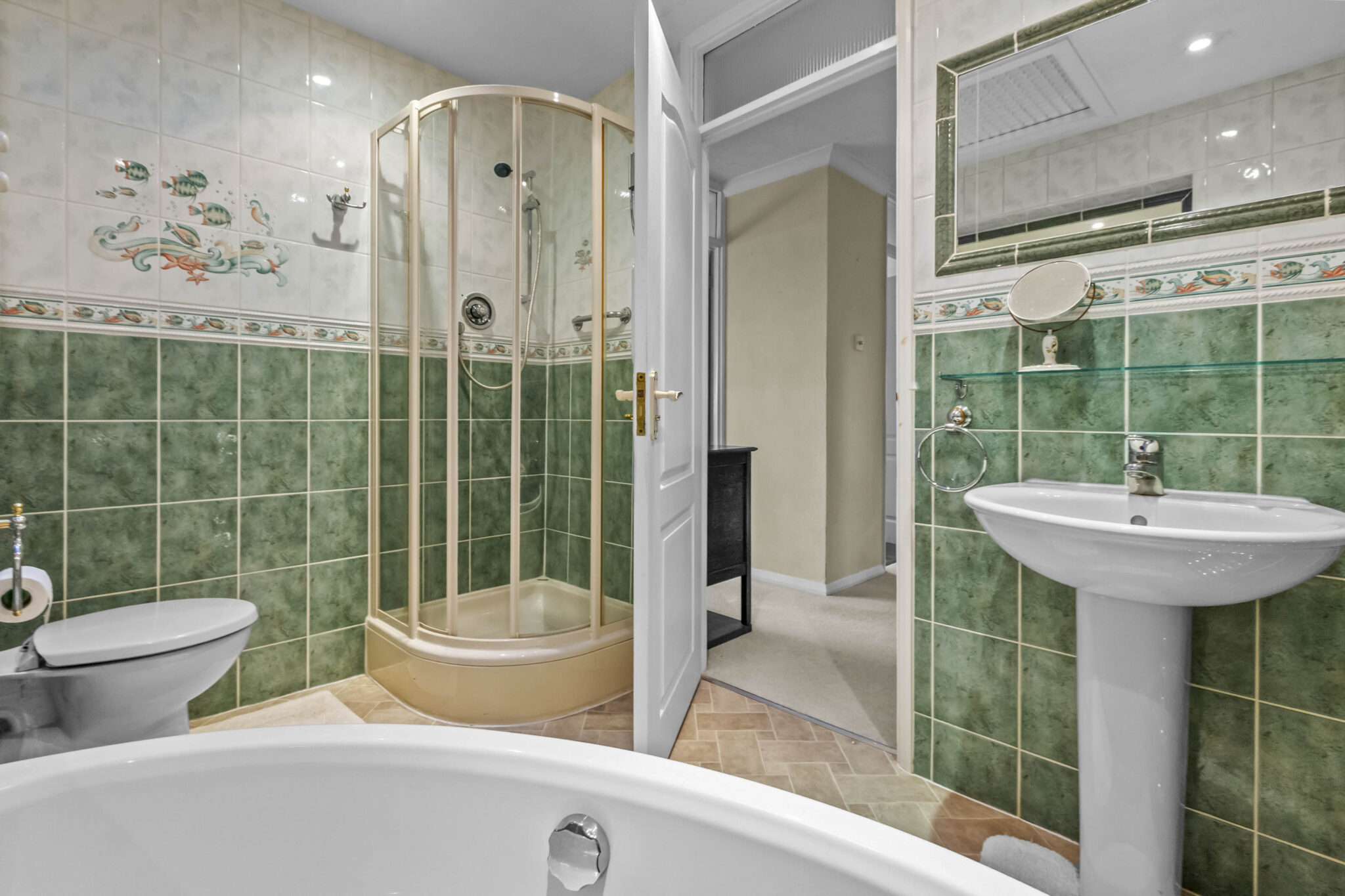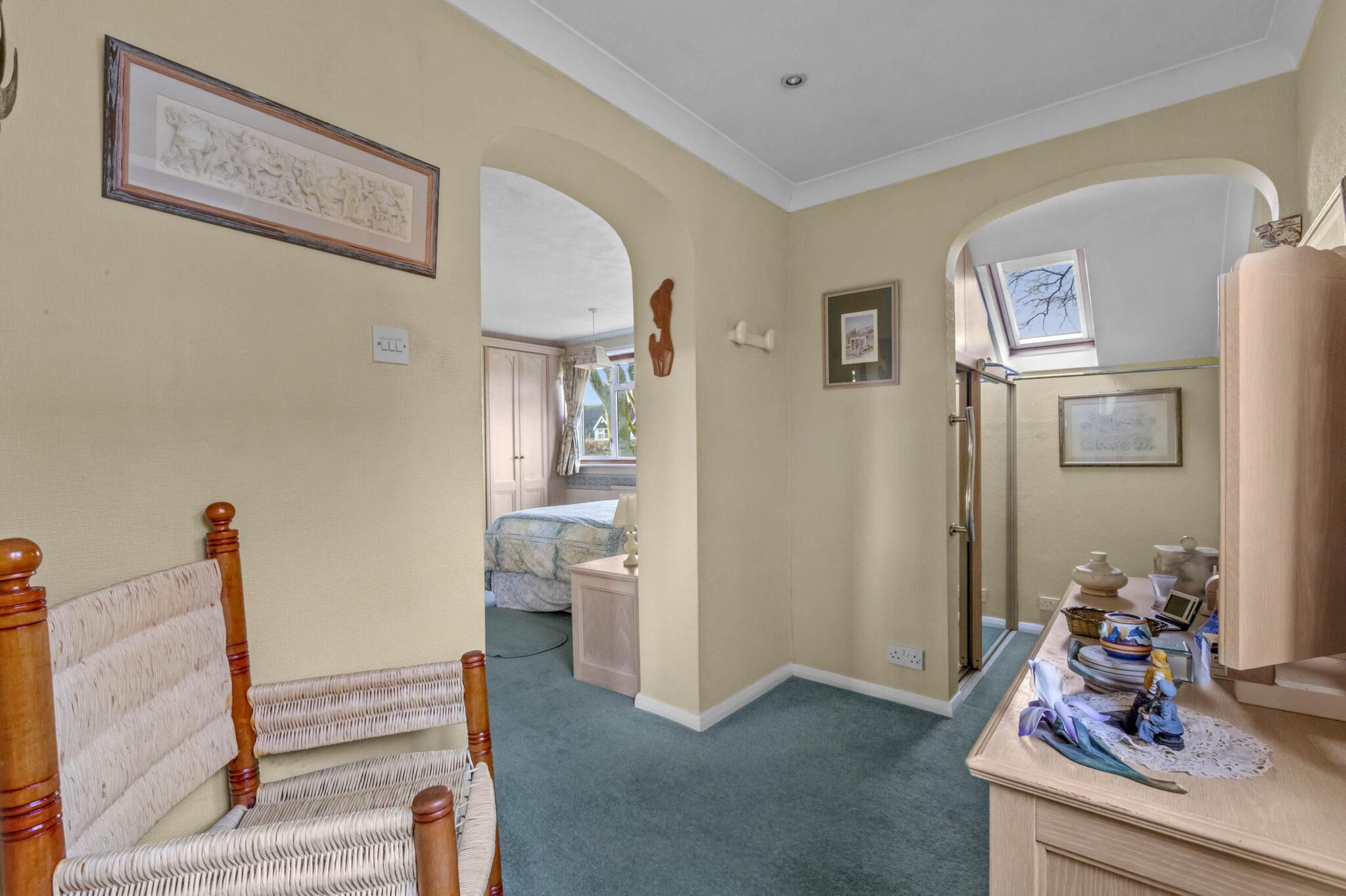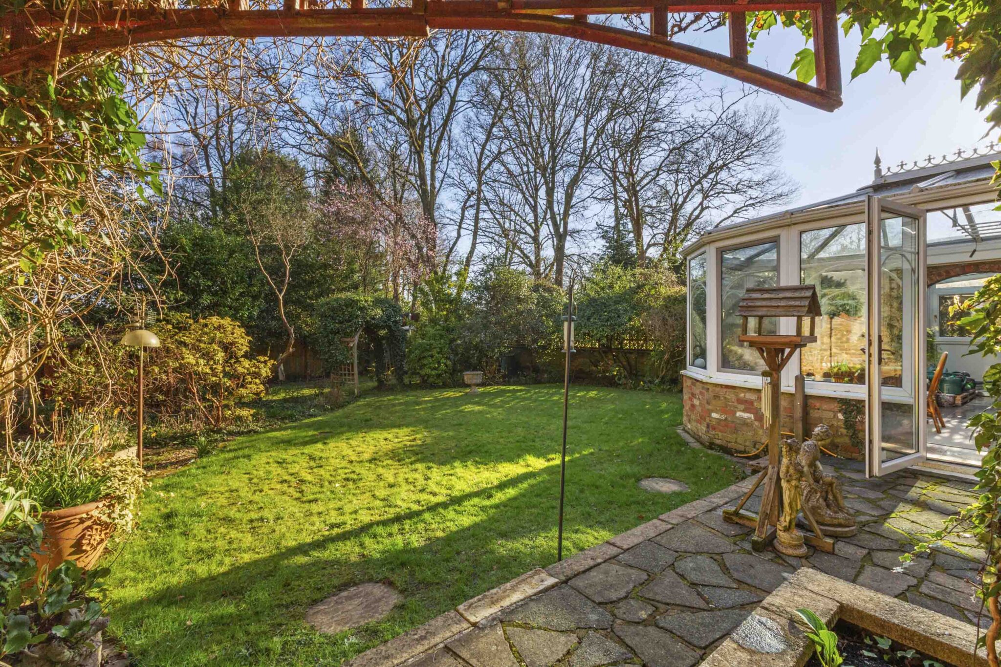 The principal bedroom suite boasts fitted wardrobes, a dressing room, and ensuite bathroom with a separate shower and a corner bath. Three further double bedrooms, each with fitted wardrobes, are served by a well-appointed family bathroom and large boarded loft space give further extension possibilities. Additional features include a secluded, level, mature rear garden with multiple patio areas and beautiful shrub borders, spacious in and out driveway providing ample off-road parking leading to the integral tandem garage with electric door. This impressive home offers a rare combination of generous proportions, flexible layout, and a sought-after location, making it an exceptional choice for families seeking convenience in a peaceful setting.