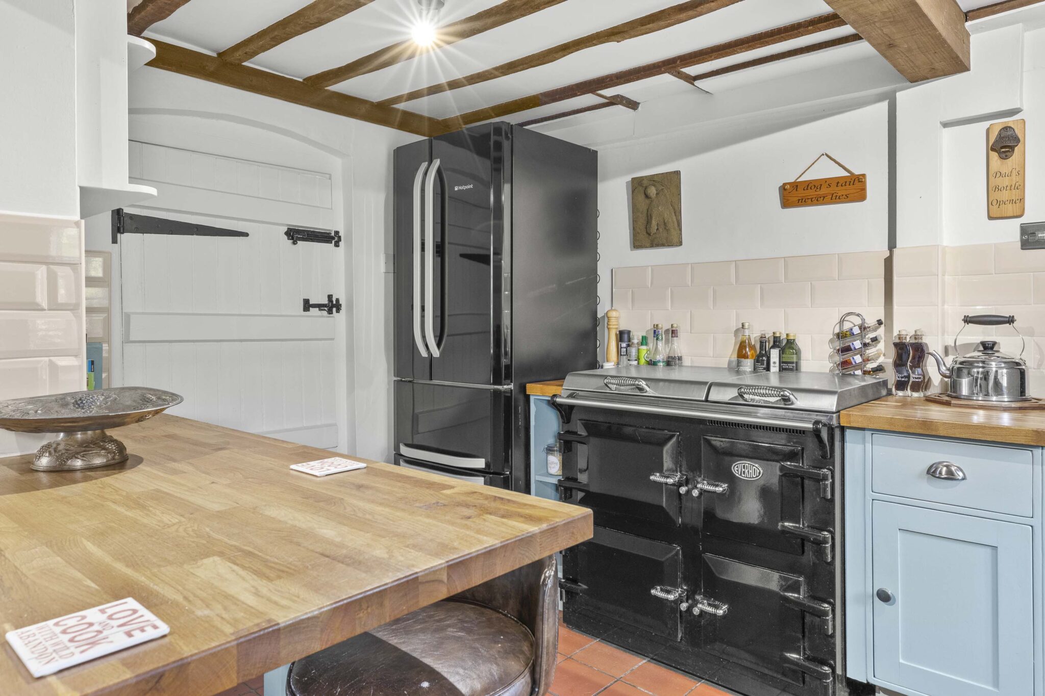 Rich in original features, the cottage showcases exposed beams, quarry-tiled floors, and a cosy sitting room centred around a log-burning fireplace. A light-filled garden room connects both the sitting room and study, framing lovely views over the gardens and paddocks.