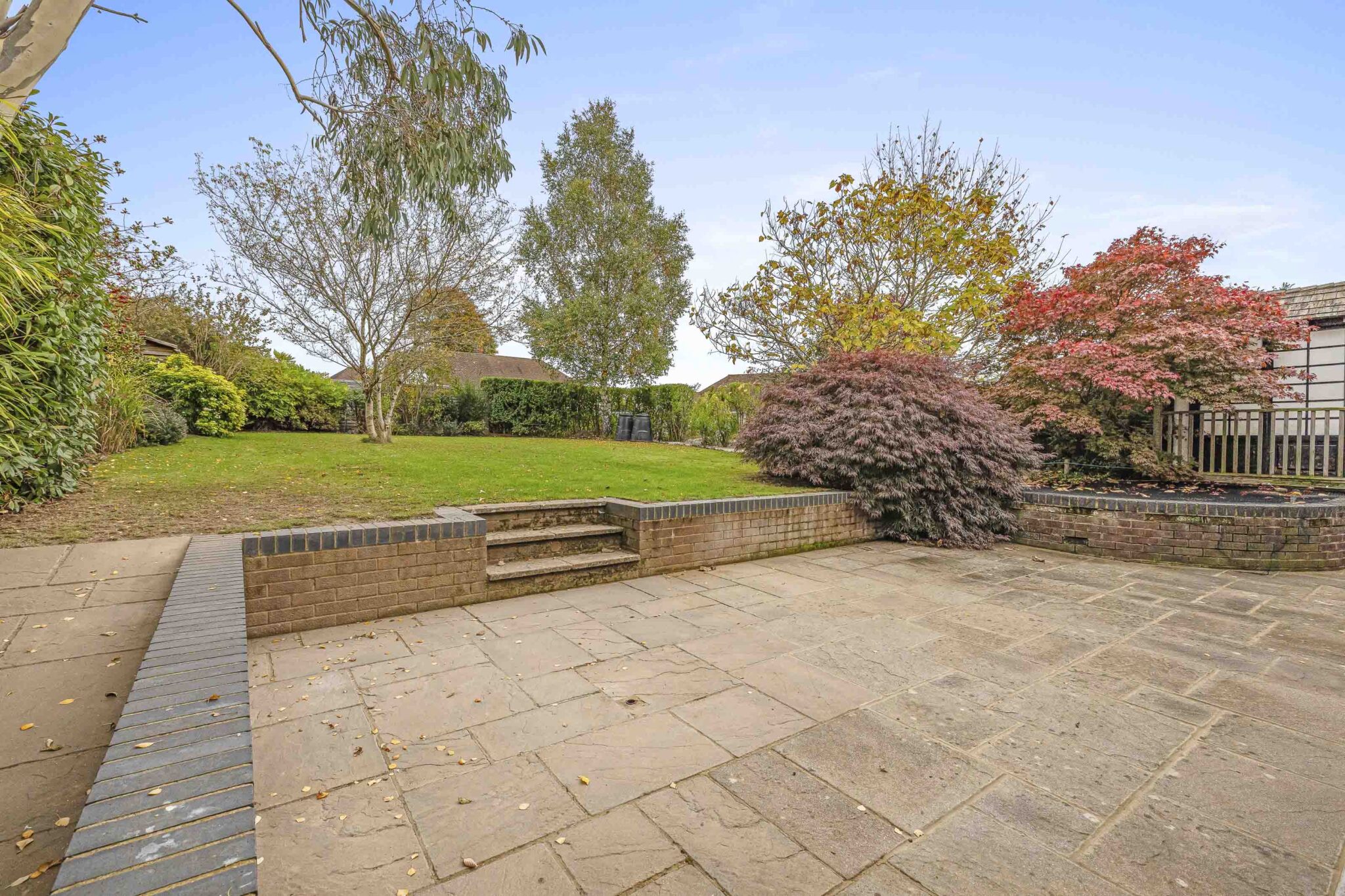 • Private and large rear garden provides a beautiful back drop with spacious patio area with steps to a generous lawn, mature shrubs and hedging and feature ornamental pond