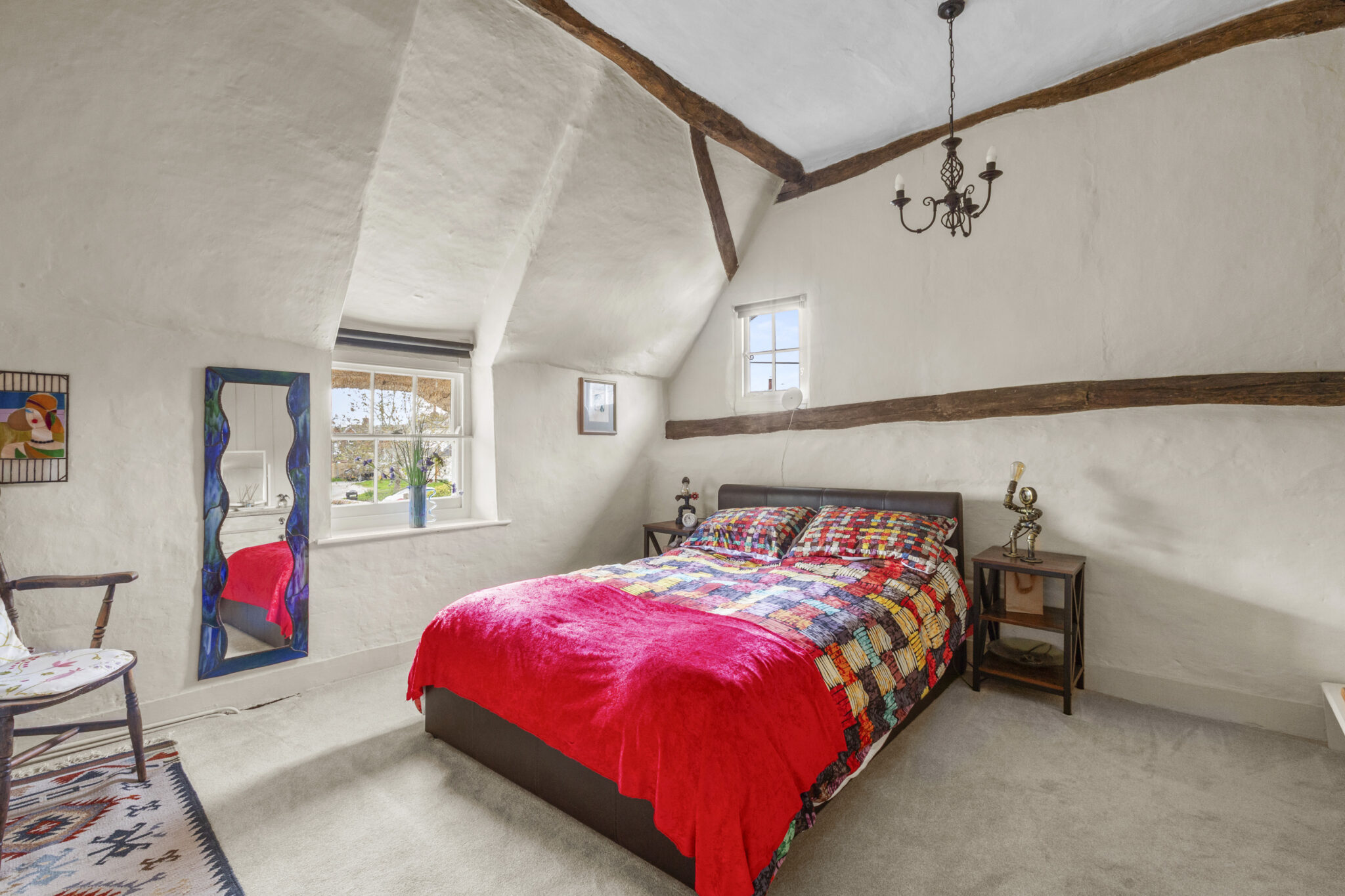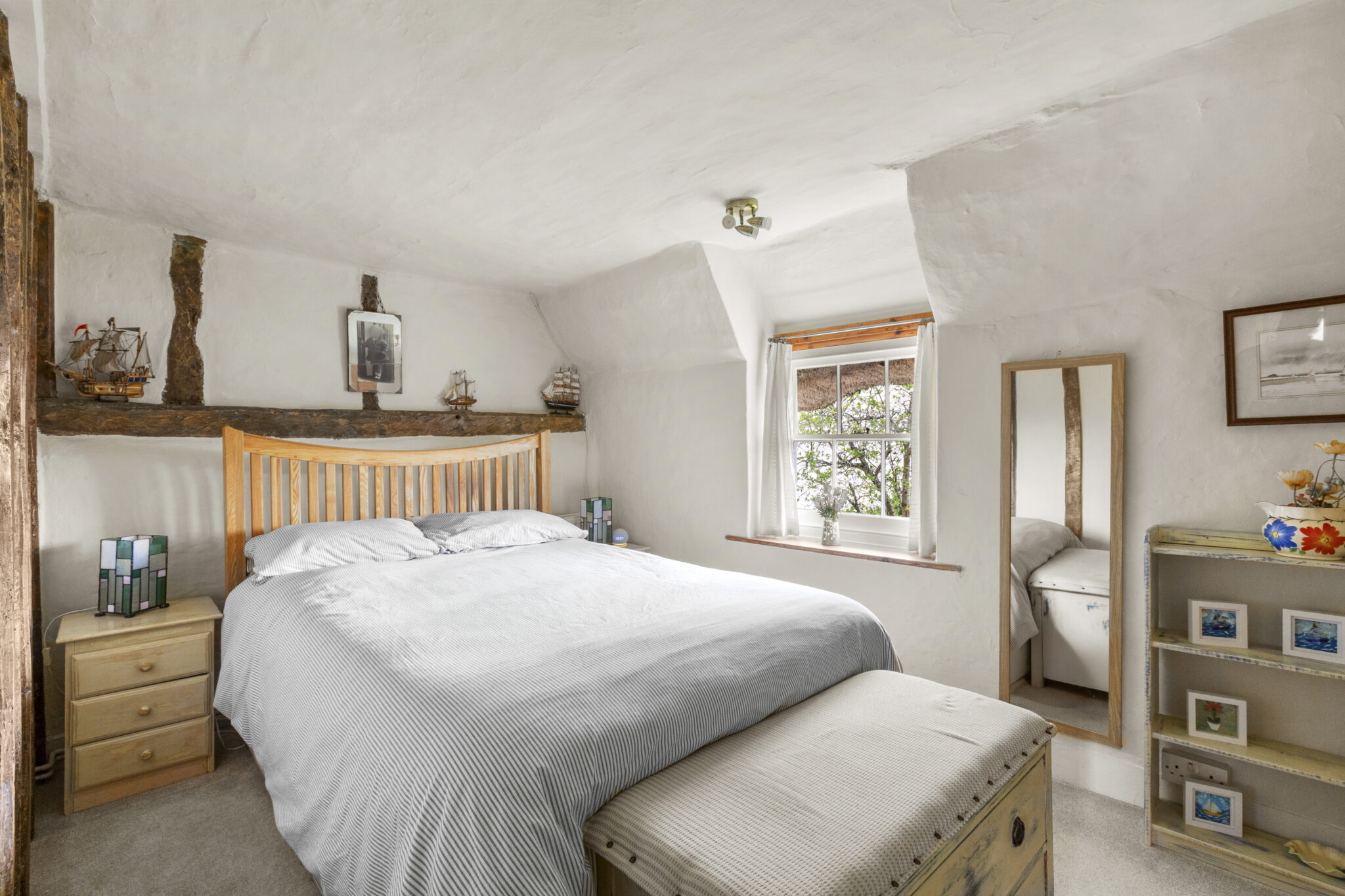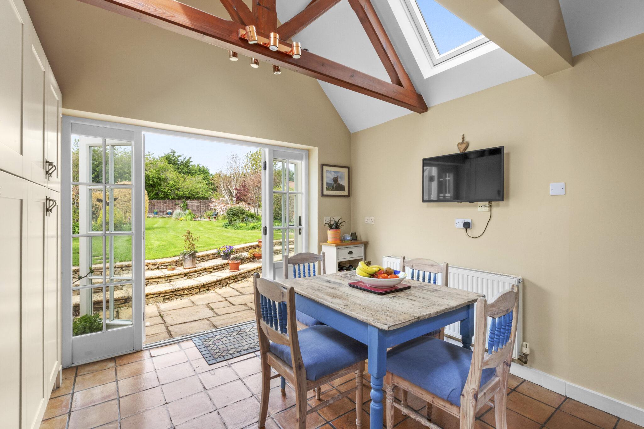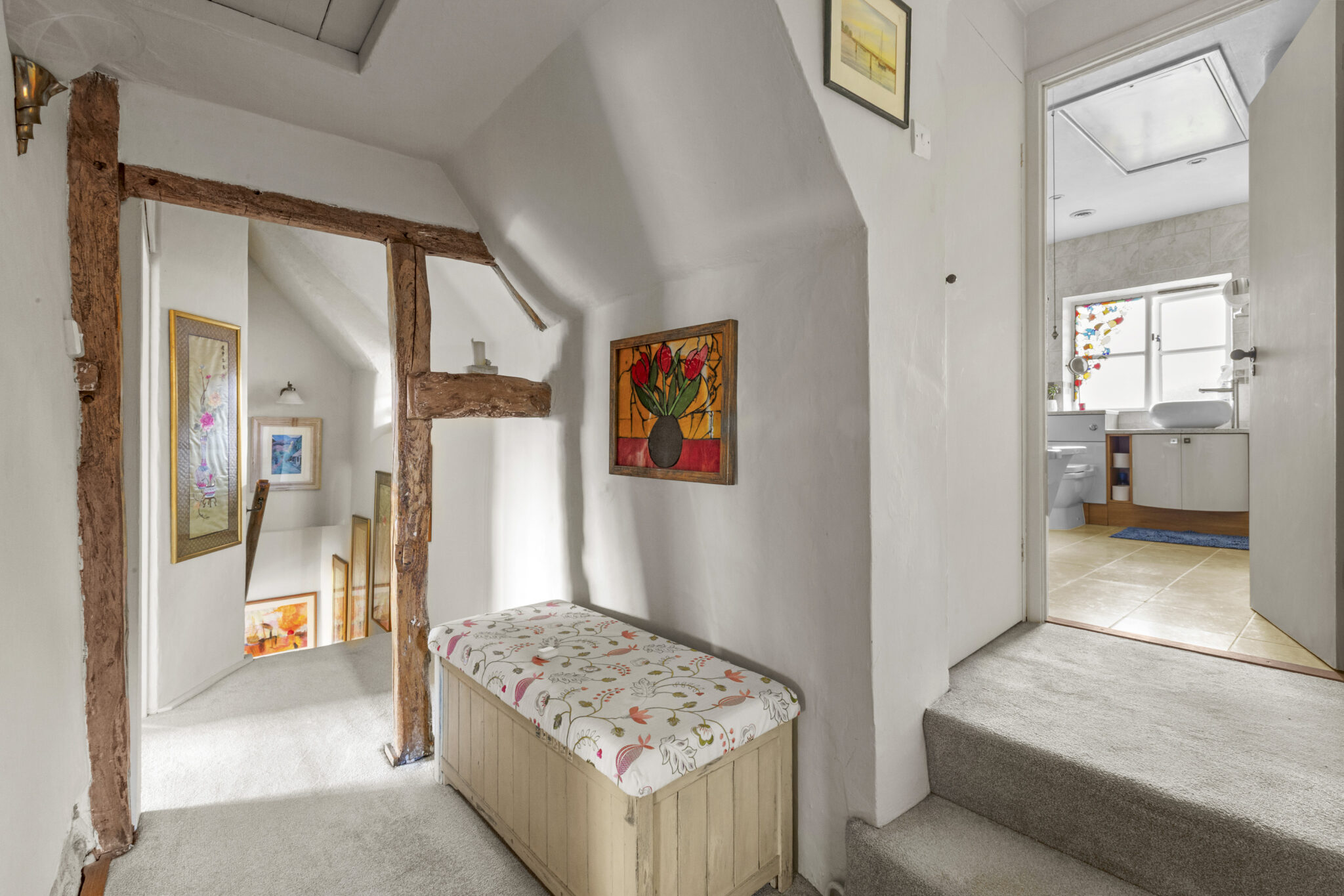 Upstairs, four beautifully presented bedrooms include a refined principal suite with contemporary shower room, complemented by a stylishly updated family bathroom. The home is rich in period detail, with exposed beams, latched doors and exquisite limed plasterwork, all carefully preserved and enhanced.