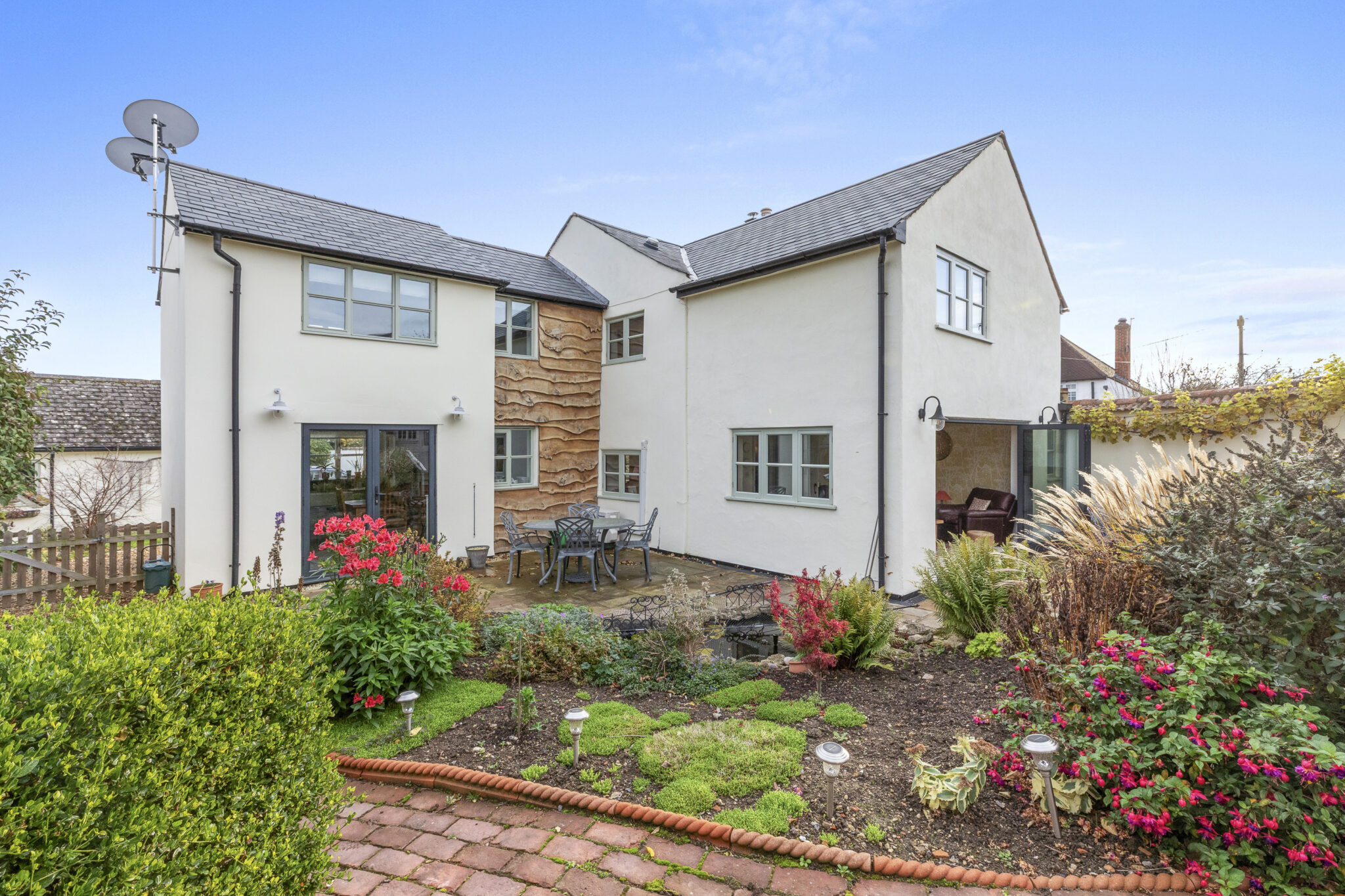 The cottage has been beautifully refurbished in recent years providing a harmonious balance of traditional charm and contemporary style. The light and spacious sitting room is a comfortable space with a flagstone floor and a woodburning stove for those chilly evenings. The family room connects seamlessly with the garden through bi-folds doors opening onto a private terrace. The kitchen/breakfast room is well appointed with a full range of bespoke units, with granite work surfaces, integrated appliances and a ceramic floor with underfloor heating. There is a small lobby off which is a study/bedroom four and along with a utility/shower room.