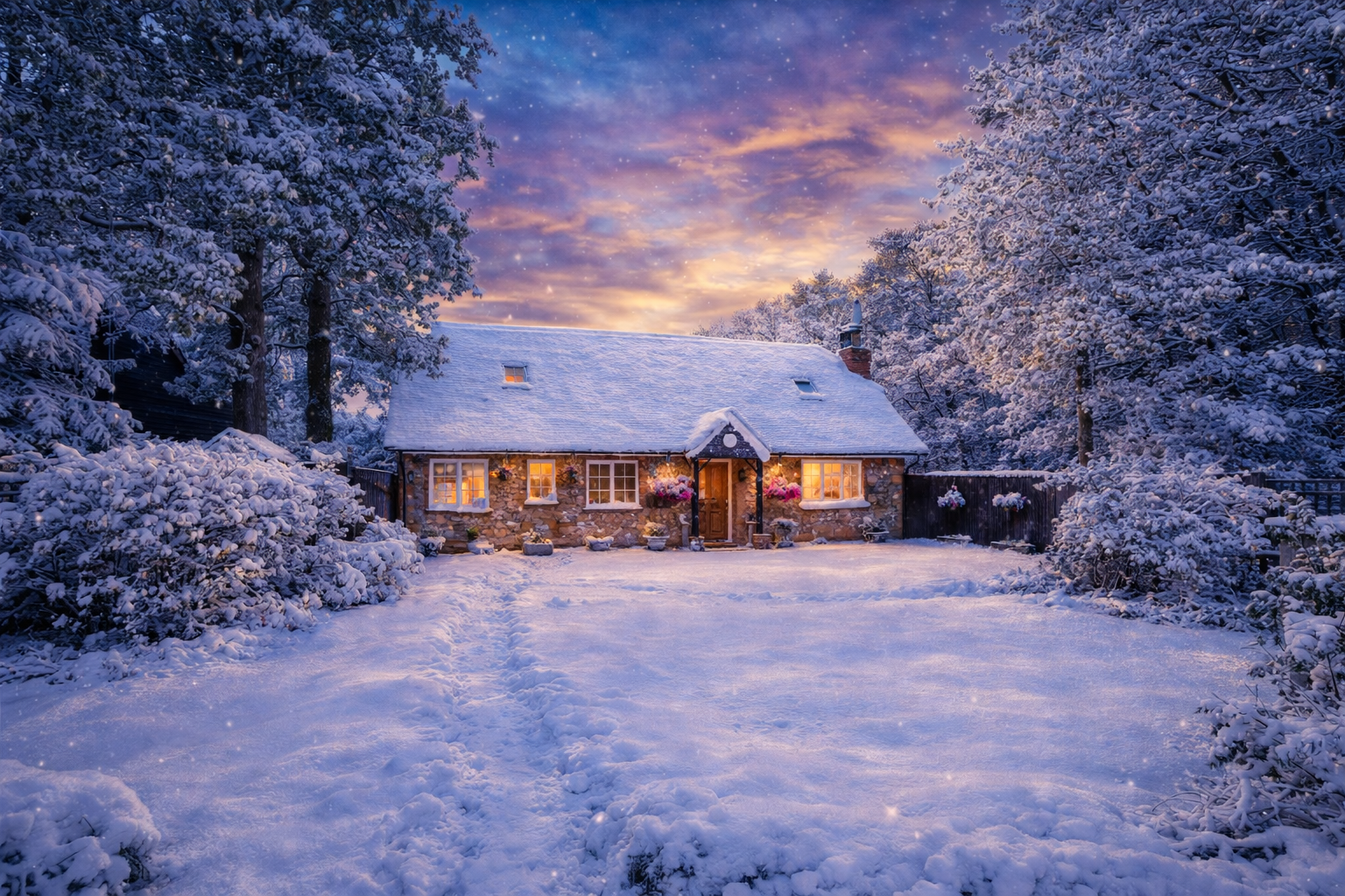 DISCLAIMER - Please note: The winter wonderland image shown has been digitally enhanced using AI to create a festive representation of the property. This image is for illustrative purposes only and does not reflect the actual current appearance of the property.