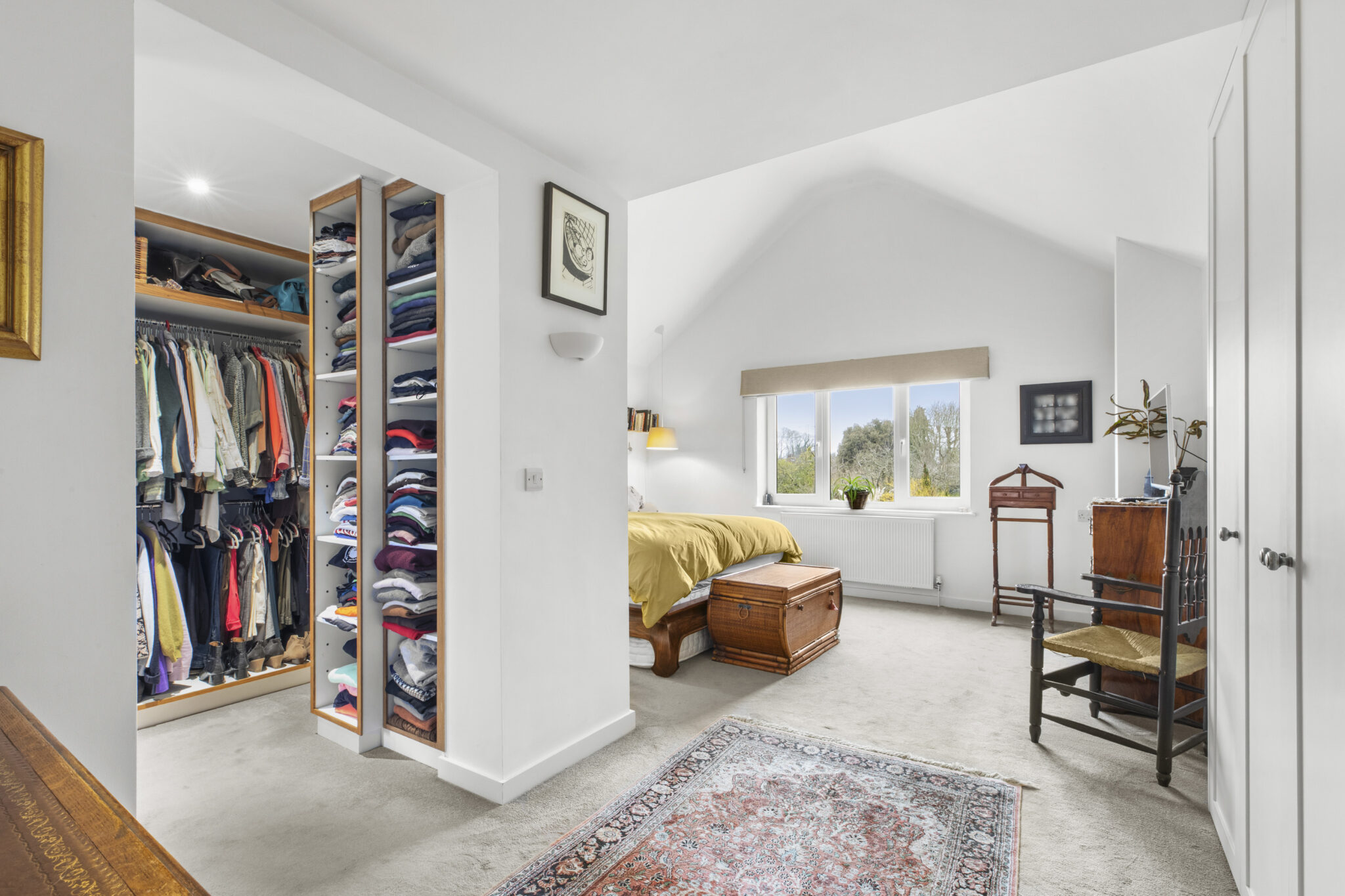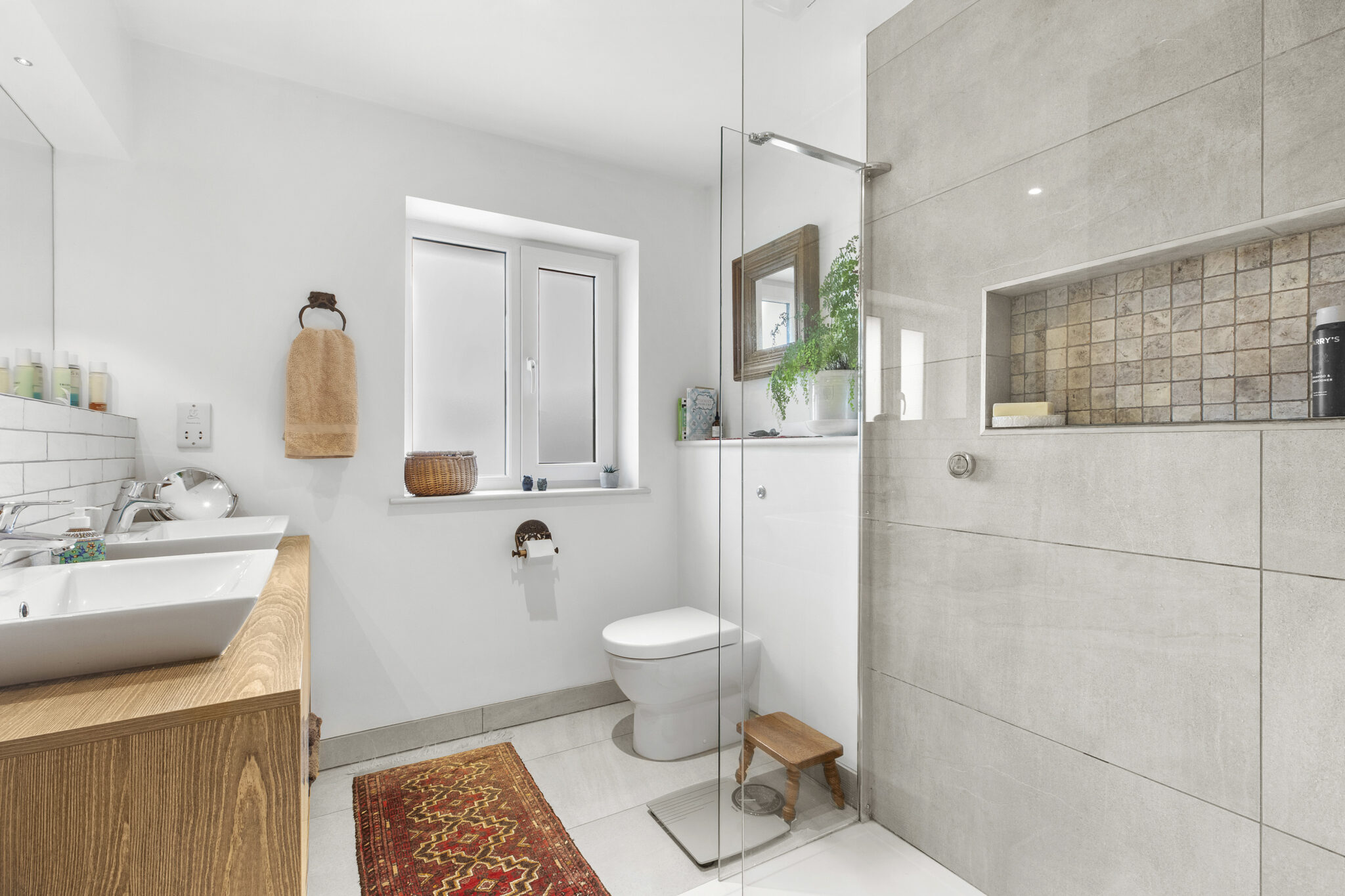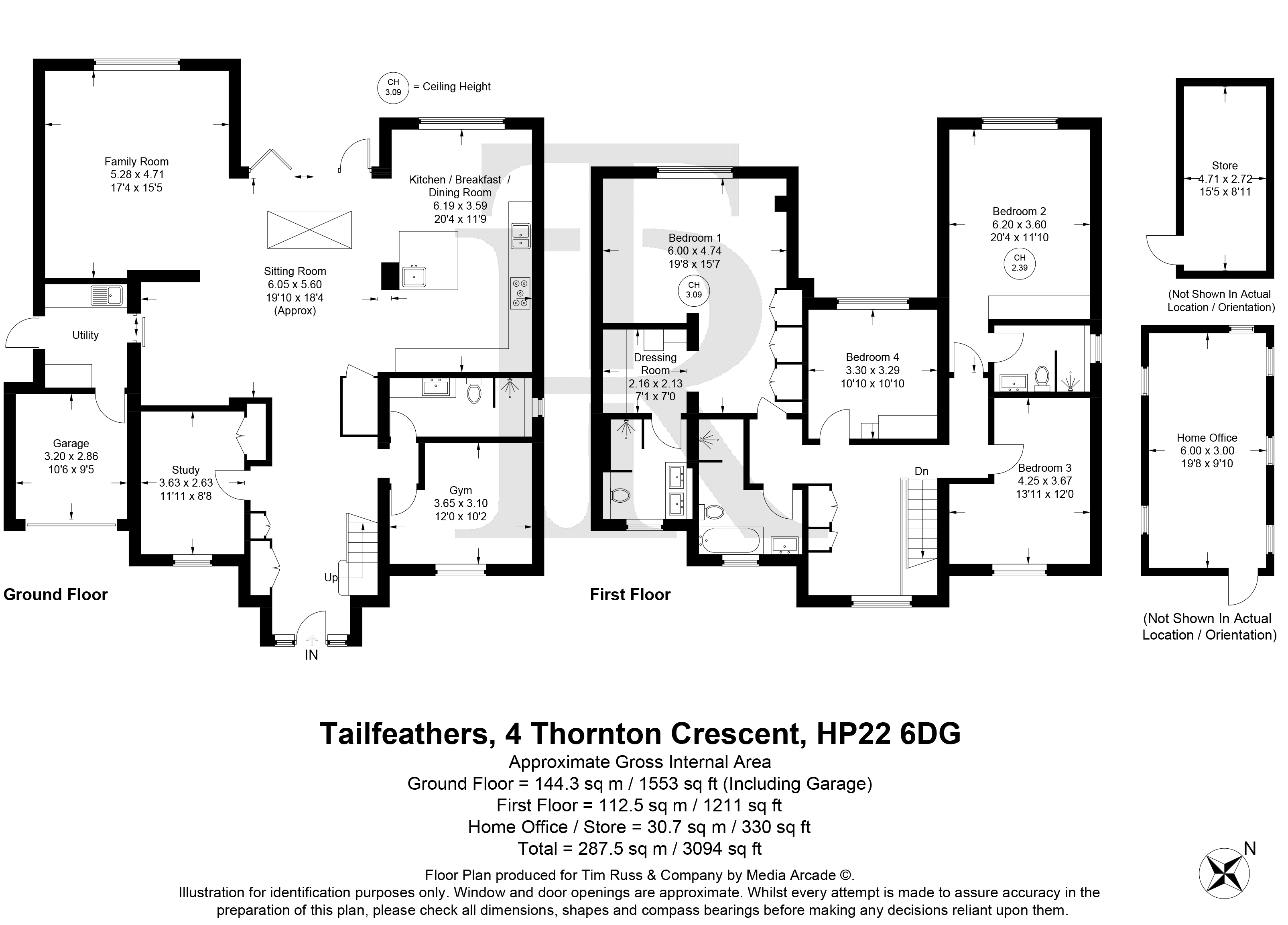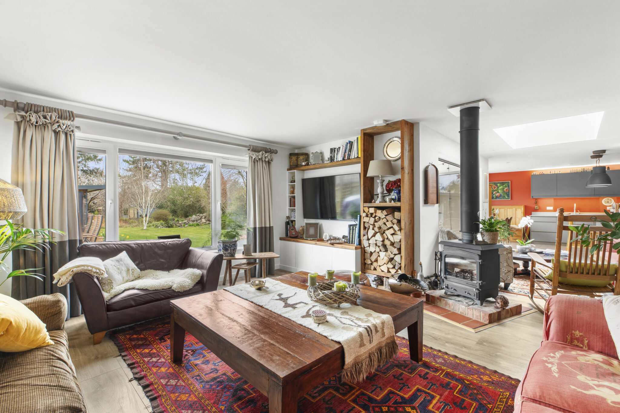 The front door opens into a wide reception hall with an immediate vista through the house to the beautiful rear garden. From the hall there is the staircase to the first floor, along with a study and a bedroom (currently used as a gym), complemented by an adjoining shower room. At the heart of the home lies an impressive open plan living space, perfect for everyday living and entertaining. The beautifully fitted and fully equipped kitchen/breakfast room flows seamlessly into the dining and sitting areas, with a striking centrally positioned double sided wood-burning stove forming a natural focal point between the spaces and creating a warm and inviting atmosphere. Bi-fold doors open onto the patio, framing the view and providing a seamless connection to the garden beyond. Completing the ground floor is a practical utility room which leads through to the garage/store. Upstairs, there is a lovely large open landing space with excellent storage. The main bedroom suite features a vaulted bedroom section, adjoining dressing room and beautifully appointed shower room. Bedroom two has an ensuite shower room and the remaining two bedrooms are served by a quality four-piece family bathroom.