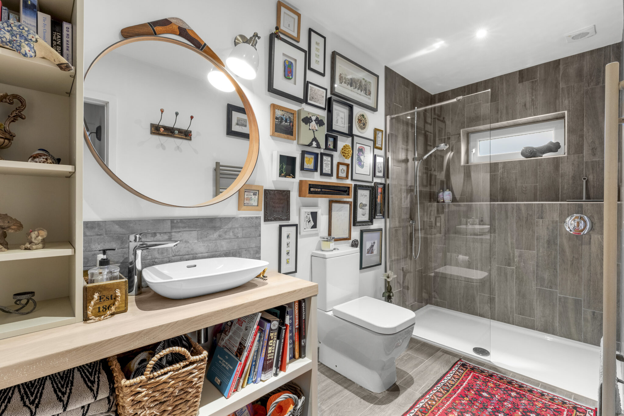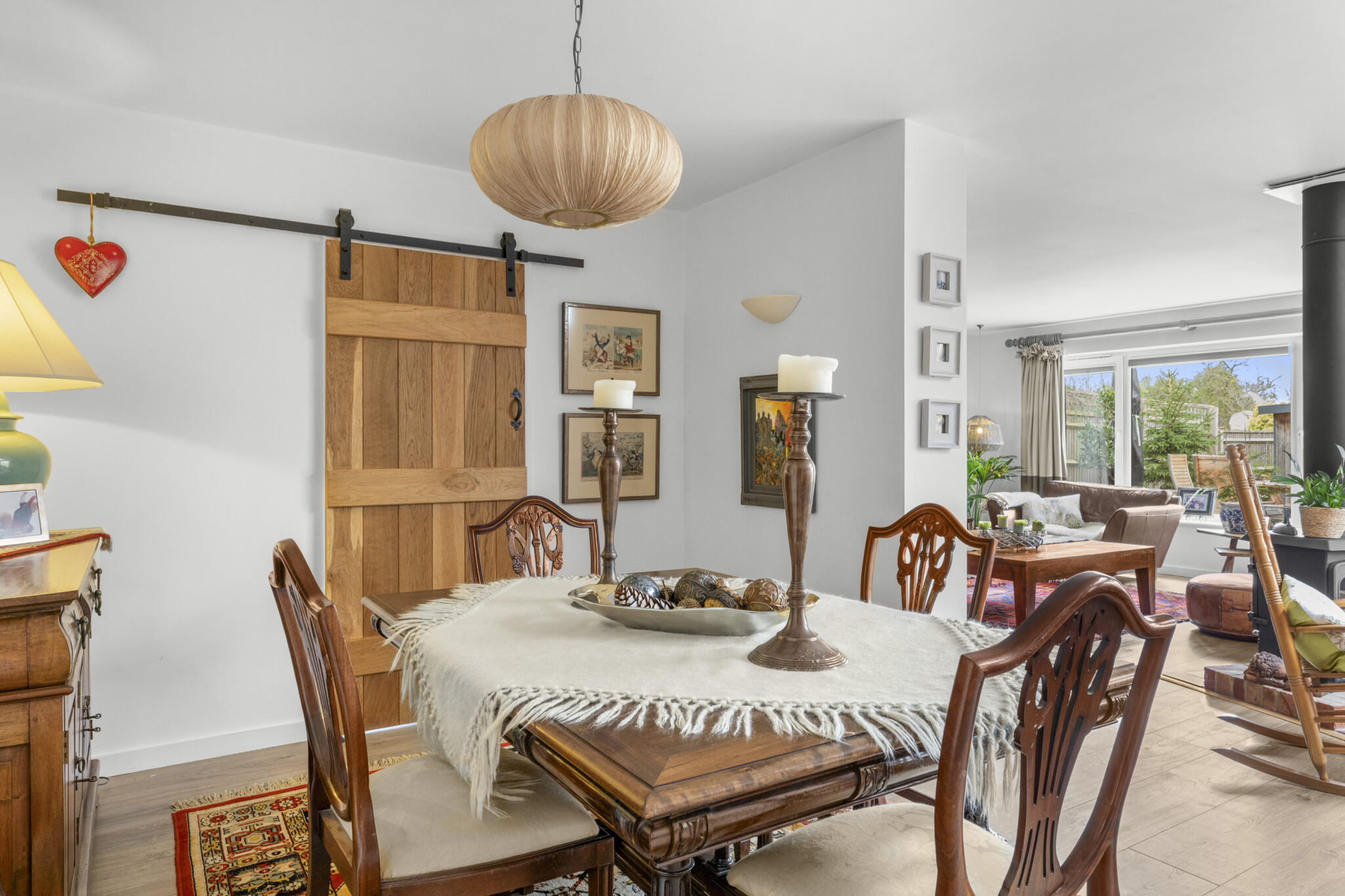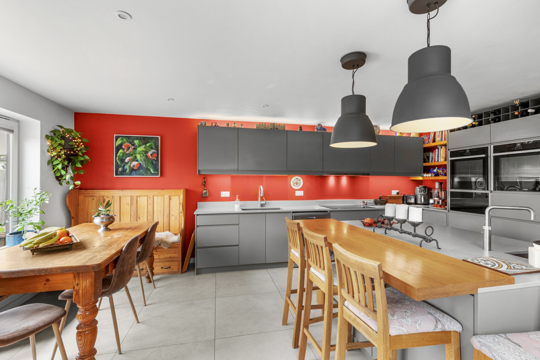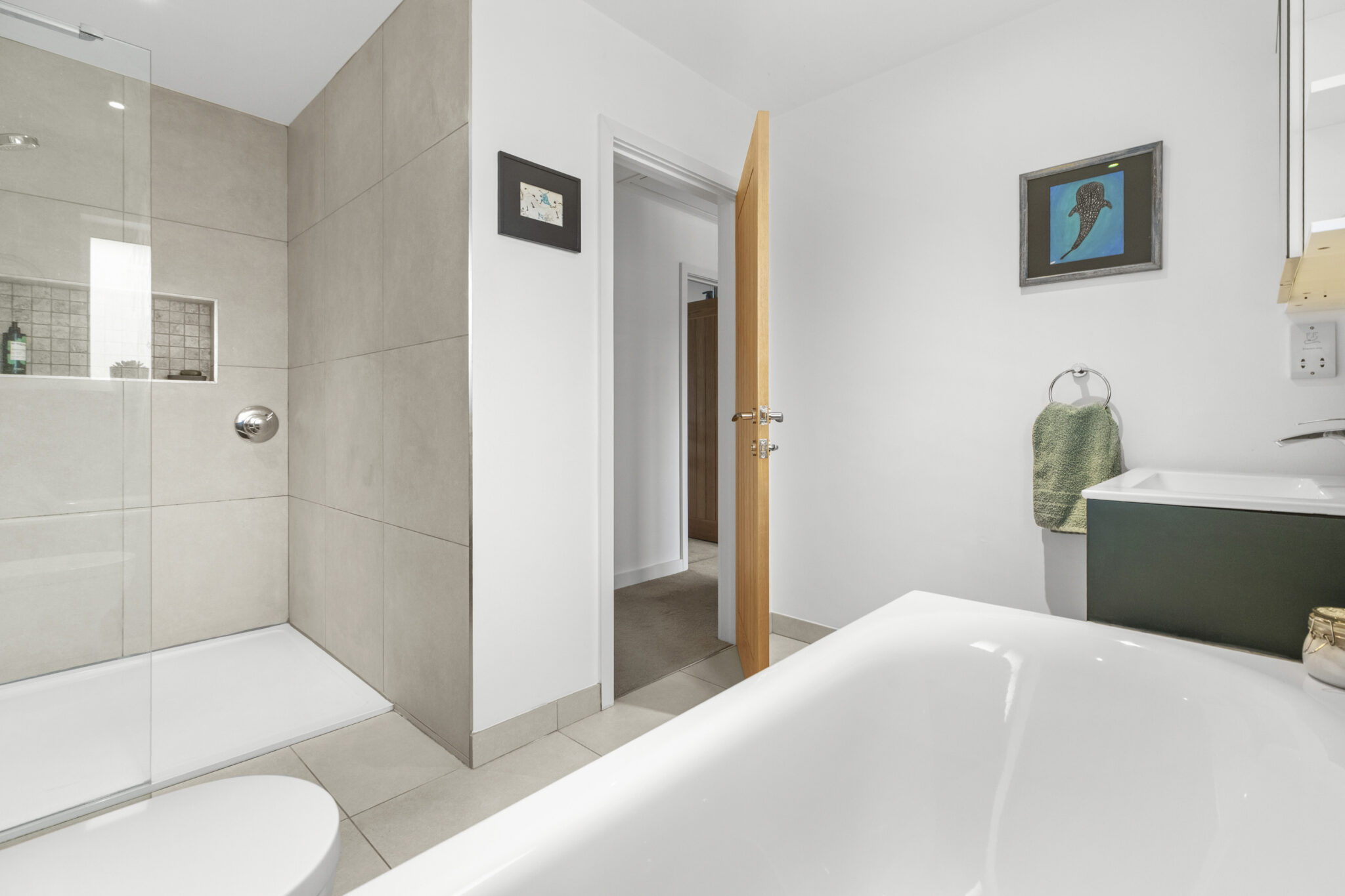 The front door opens into a wide reception hall with an immediate vista through the house to the beautiful rear garden. From the hall there is the staircase to the first floor, along with a study and a bedroom (currently used as a gym), complemented by an adjoining shower room. At the heart of the home lies an impressive open plan living space, perfect for everyday living and entertaining. The beautifully fitted and fully equipped kitchen/breakfast room flows seamlessly into the dining and sitting areas, with a striking centrally positioned double sided wood-burning stove forming a natural focal point between the spaces and creating a warm and inviting atmosphere. Bi-fold doors open onto the patio, framing the view and providing a seamless connection to the garden beyond. Completing the ground floor is a practical utility room which leads through to the garage/store. Upstairs, there is a lovely large open landing space with excellent storage. The main bedroom suite features a vaulted bedroom section, adjoining dressing room and beautifully appointed shower room. Bedroom two has an ensuite shower room and the remaining two bedrooms are served by a quality four-piece family bathroom.