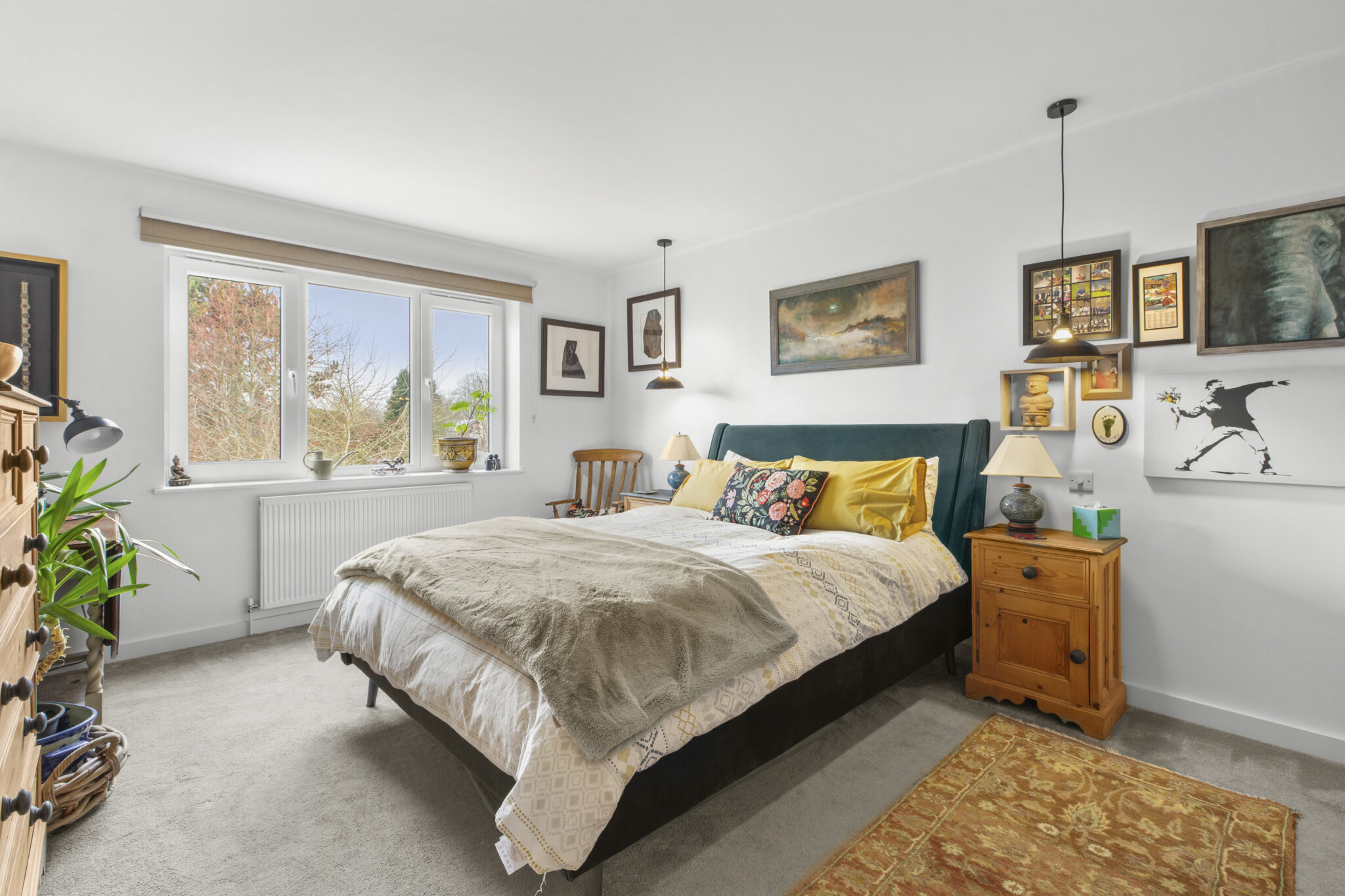 To the front of the property is a wide ‘in and out’ driveway provides ample off-road parking and is bordered by colourful planted beds. There is a large cycle storage unit for 3 bikes, with bin storage alongside.