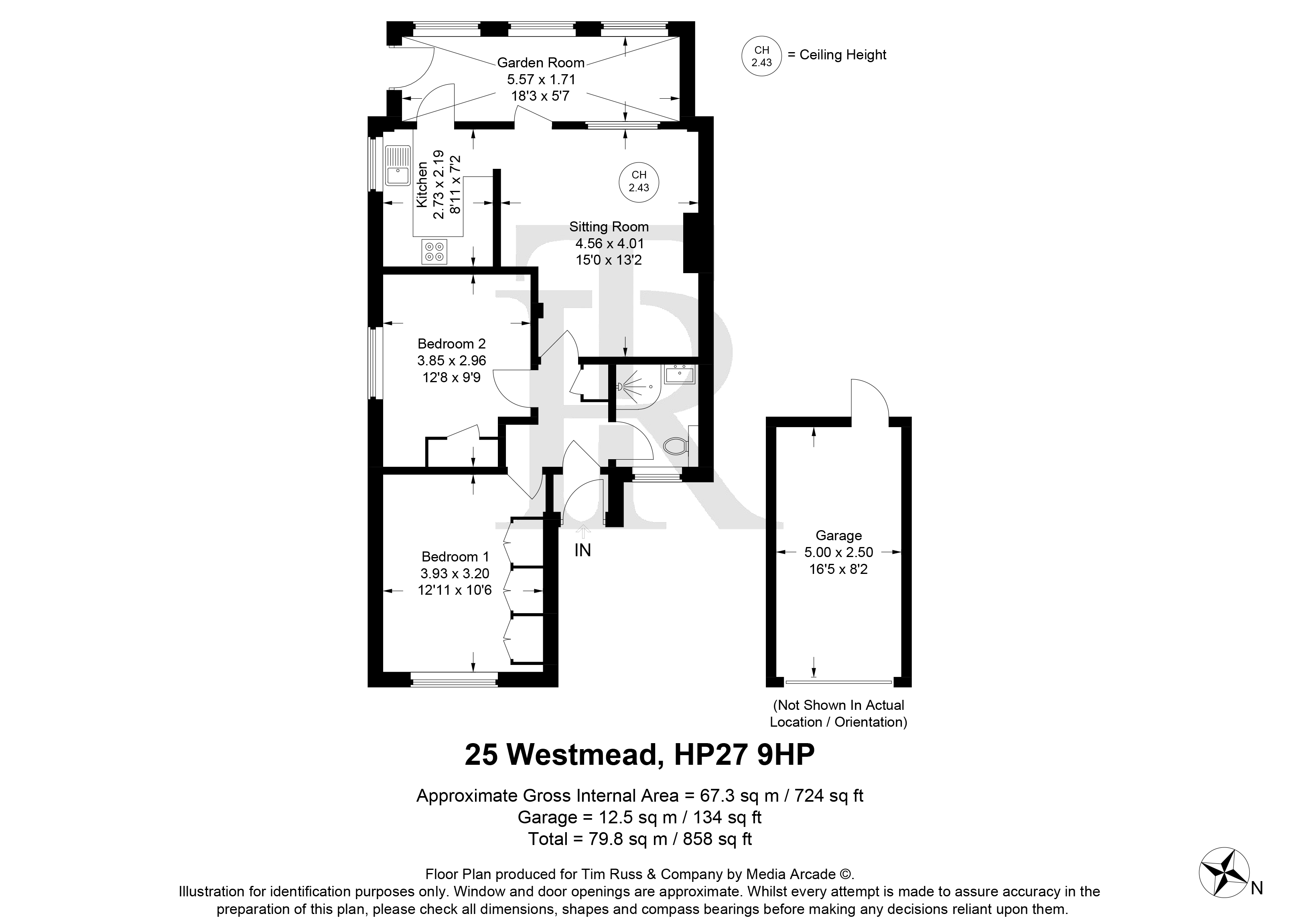 Semi-detached bungalow near High Street, no chain, two double bedrooms, garden room, large west-facing garden, garage, off-road parking, planning permission to extend side and rear