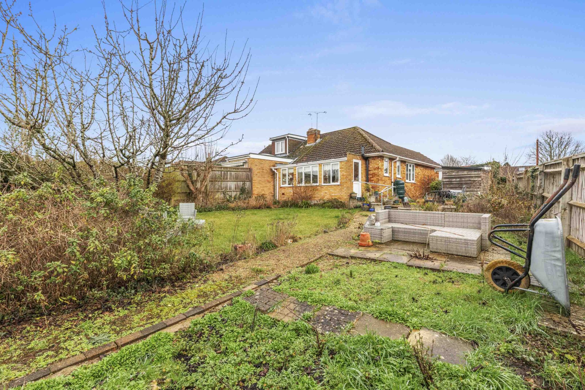 Semi-detached bungalow near High Street, no chain, two double bedrooms, garden room, large west-facing garden, garage, off-road parking, planning permission to extend side and rear...