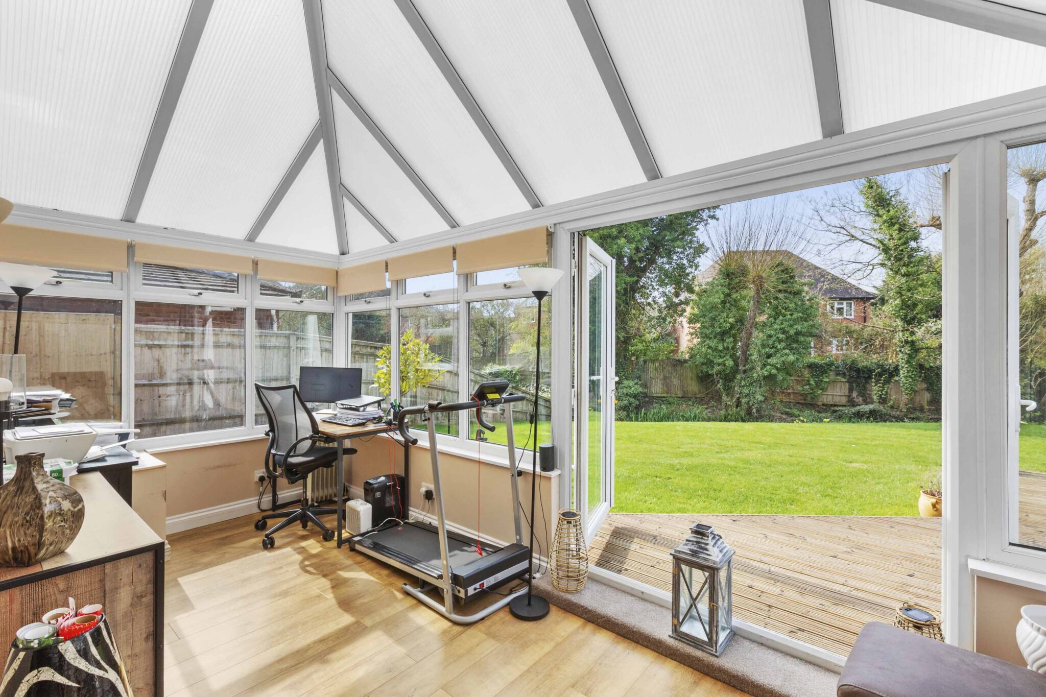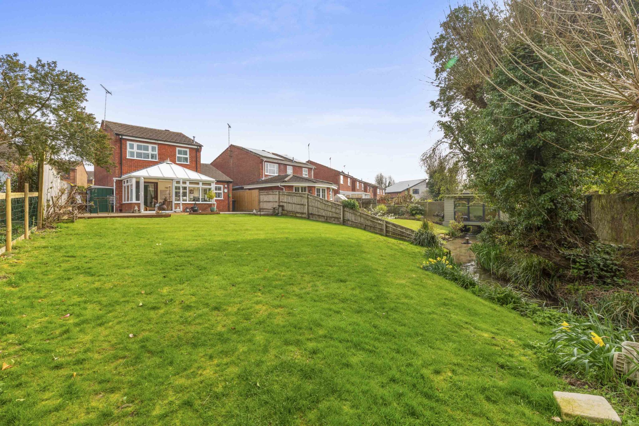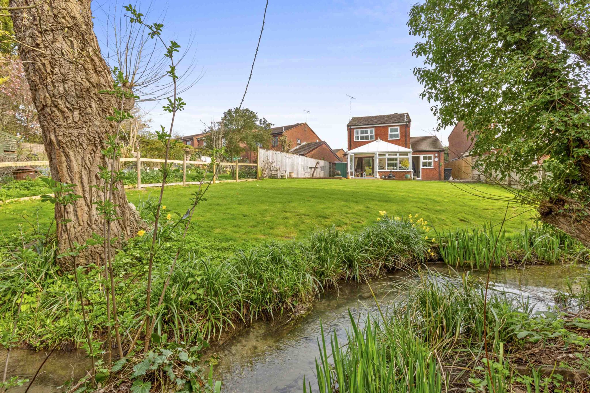 Outside, the property truly stands out with its generous south-westerly facing rear garden, enjoying plenty of sunshine and backing onto a peaceful stream at the foot—creating a private and tranquil setting. Additional benefits include a garage and driveway parking for multiple vehicles.