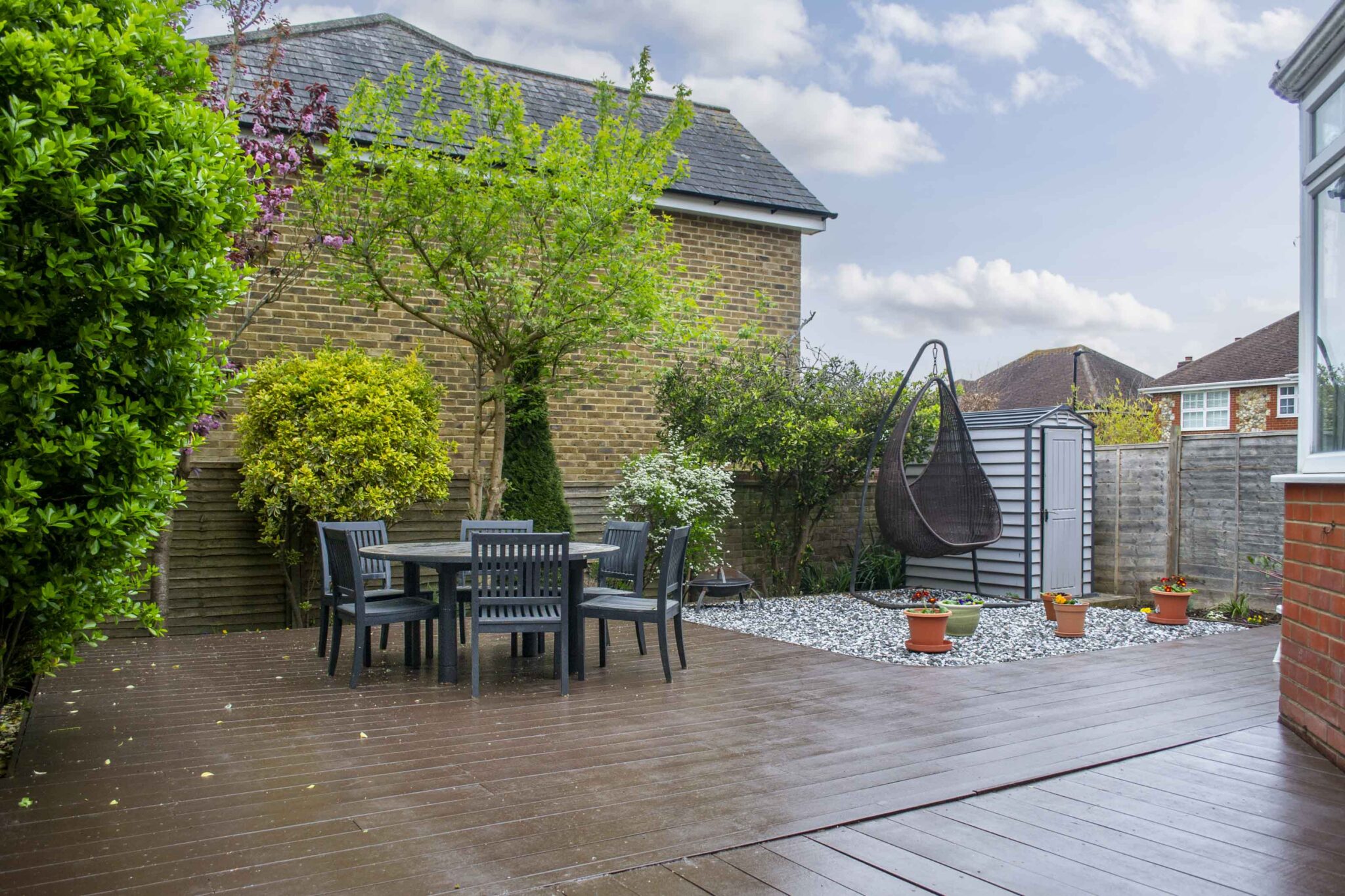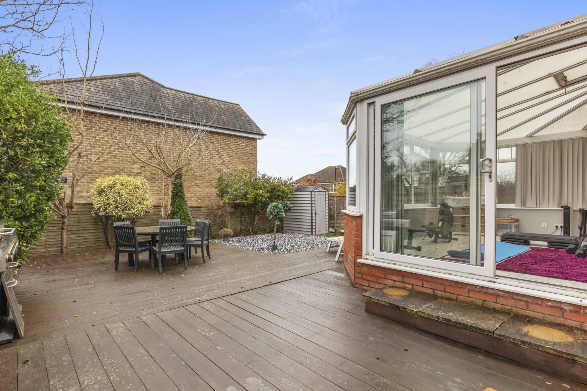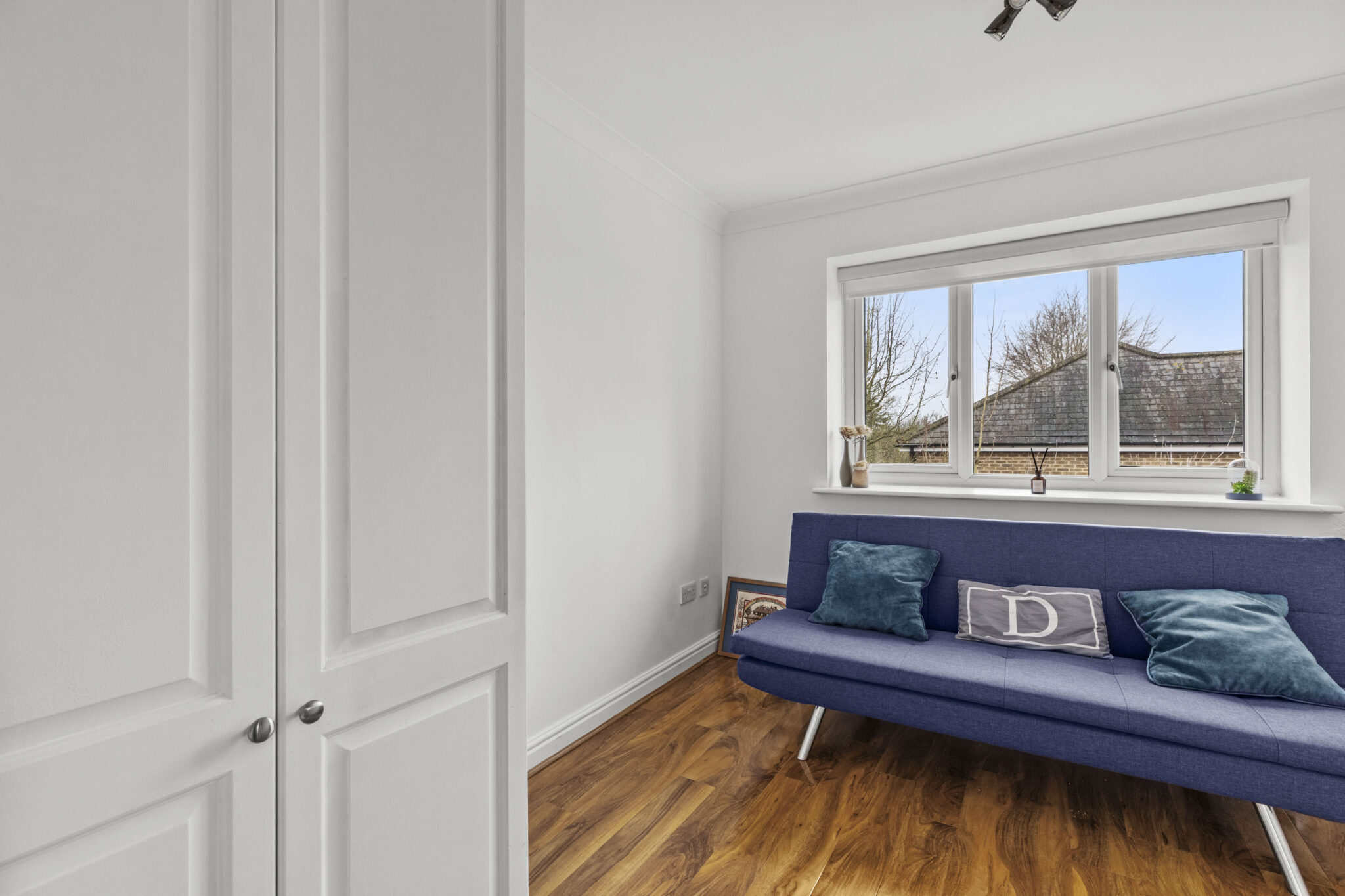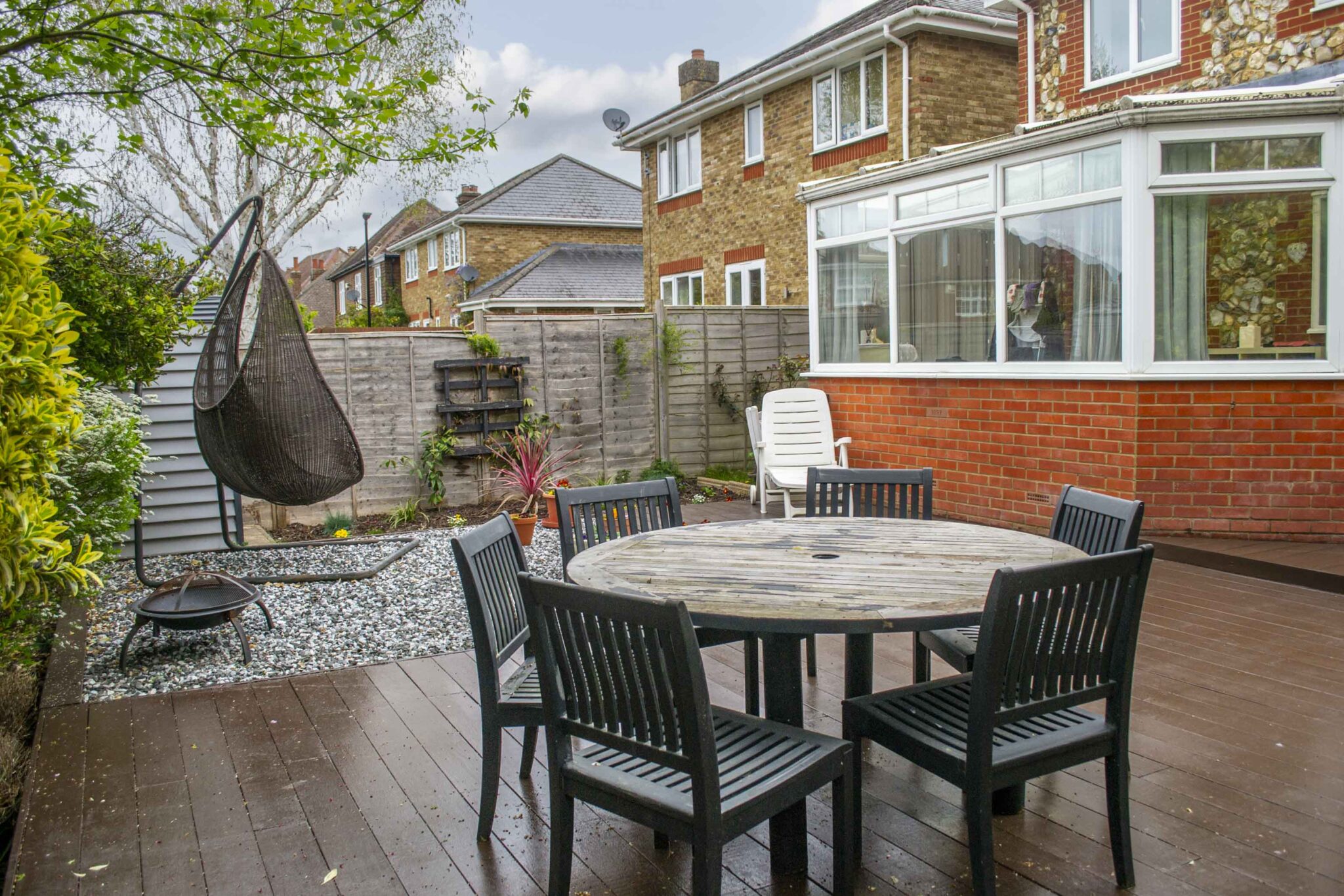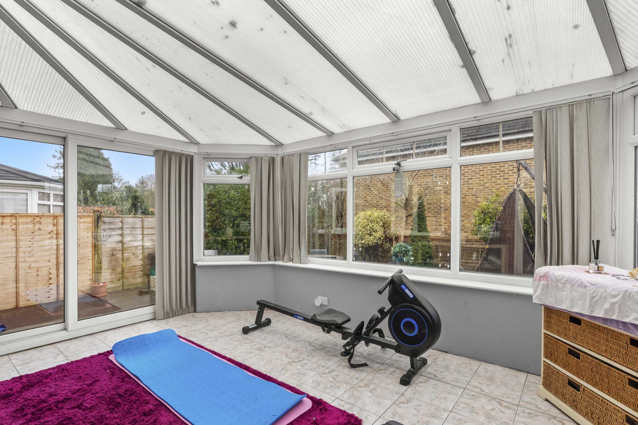 The ground floor offers flexible living space, including an entrance hall, cloakroom, kitchen, sitting room, and dining room. The conservatory opens onto the garden and provides the option to add a solid roof solution, while the former garage has been converted into a den/snug, with potential to fully convert subject to the necessary consents. There is also scope to create a kitchen/dining room, allowing the space to be adapted to suit a variety of lifestyles.