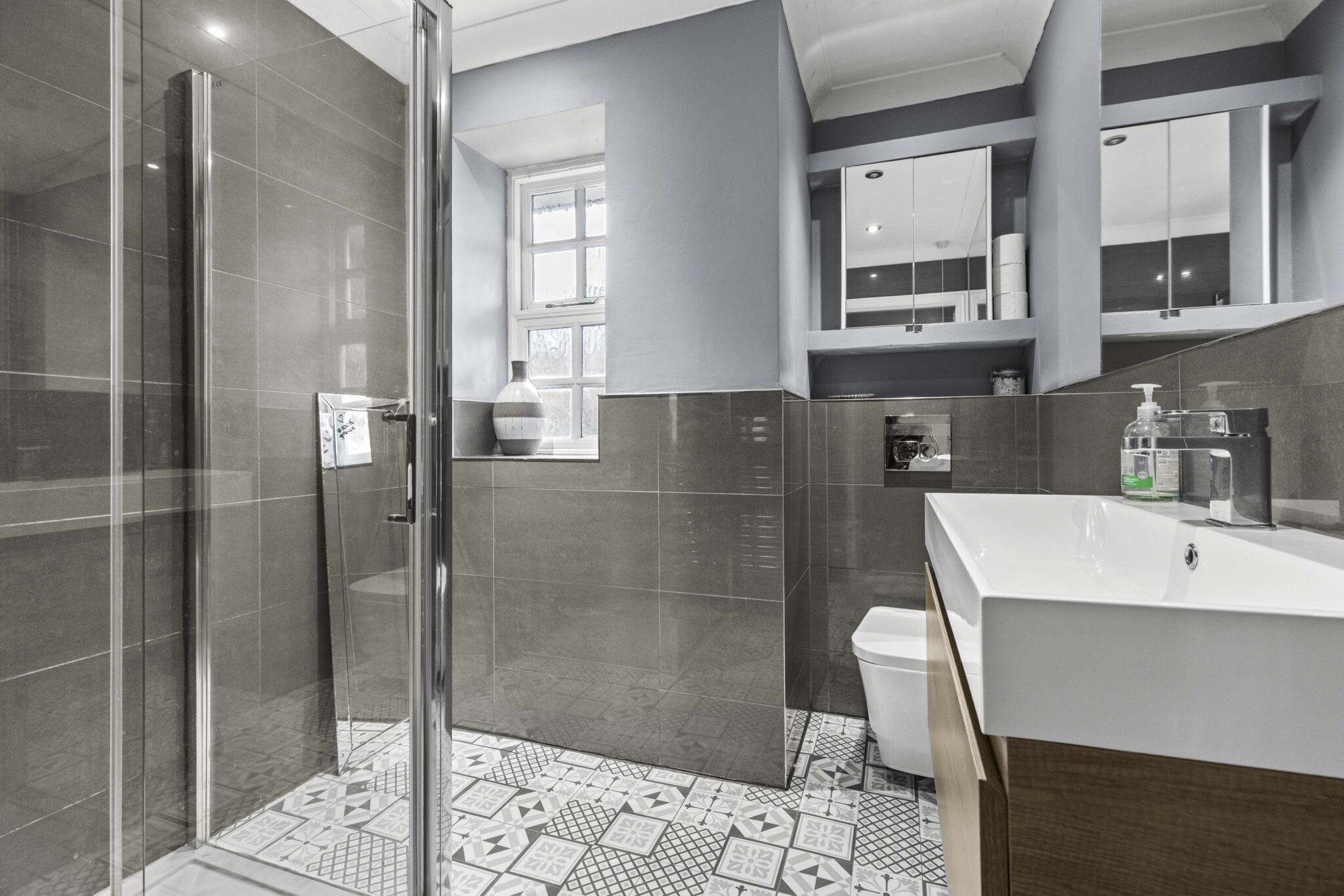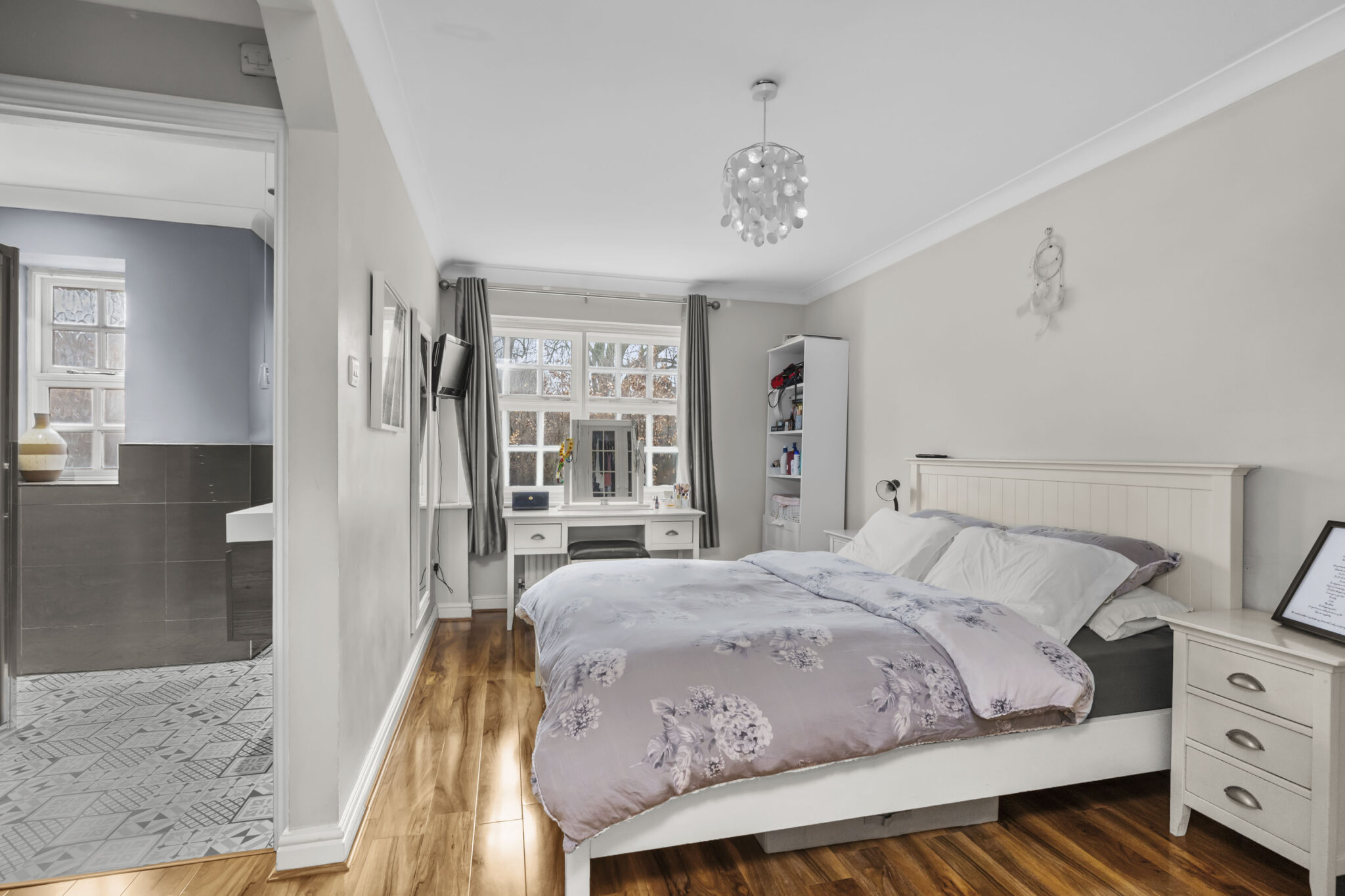 On the first floor are well-proportioned bedrooms, including the principal bedroom, which benefits from a modern three-piece en-suite shower room, and a family bathroom, completing a practical layout for family living.